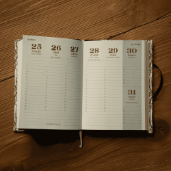 Ručně vázaný diář velikosti 11 x 15,5cm s naším originálním zpracováním. Desky potažené designovým papírem s praktickou gumičkou.