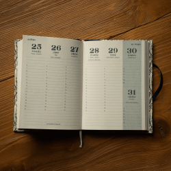 Ručně vázaný diář velikosti 11 x 15,5cm s naším originálním zpracováním. Desky potažené designovým papírem s praktickou gumičkou.
