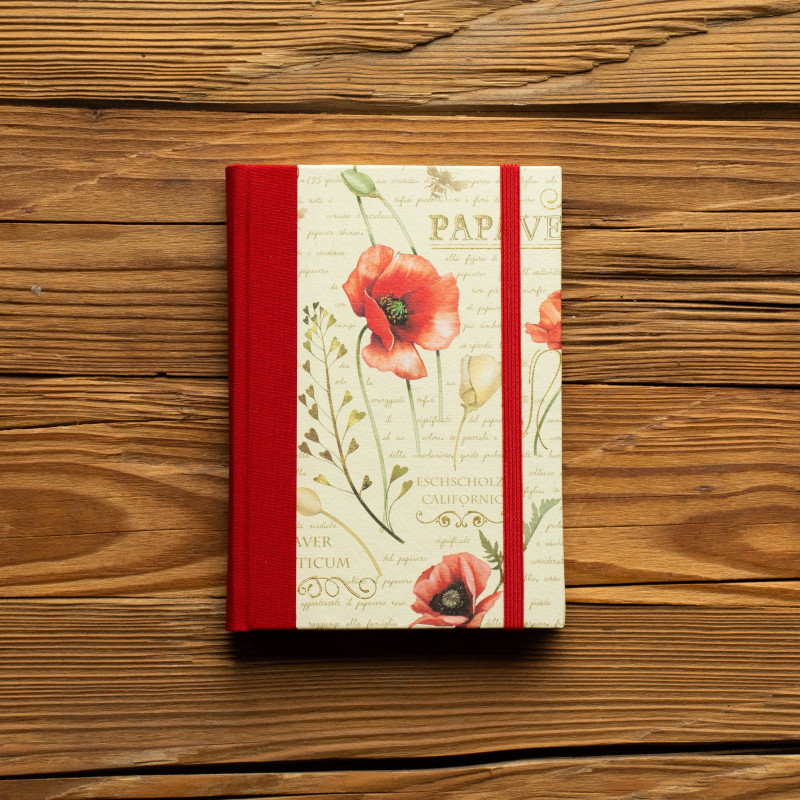 Ručně vázaný diář velikosti 11 x 15,5cm s naším originálním zpracováním a citáty uvnitř. Desky potažené designovým papírem s praktickou gumičkou.