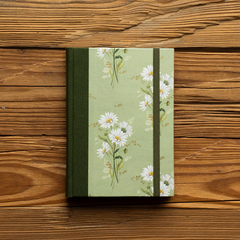 Ručně vázaný diář velikosti 11 x 15,5cm s naším originálním zpracováním a citáty uvnitř. Desky potažené designovým papírem s praktickou gumičkou.